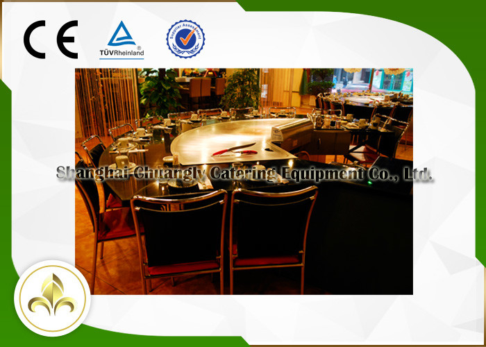 | Nome do produto | O fã de 11 Seat dá forma à tabela elétrica da grade de Teppanyaki com sistema da exaustão |